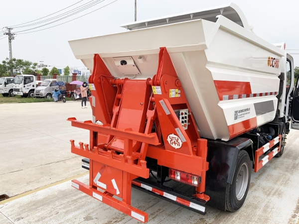 | 1.专用装置:挂桶机构和箱体,主要用于垃圾的收集和转运;2.随底盘选装新前格栅及新logo.选装新前围;选装后部结构,挂桶机构;3.侧,后防护材料均为Q235,连接方式为焊接加螺栓连接,后部防护断面尺寸(mm):120×60,离地高度350mm;选装后部挂桶机构时后防护由专用装置替代,离地高度350mm;4.发动机型号/油耗(L/100km)对应关系:Q23-115E60/11.4,Q23-115C60/11.3;5.ABS系统控制方式为4S/4M,ABS型号为CM4XL-4S/4M,生产厂家为广州瑞立科密汽车电子股份有限公司.该车型可选装ETC车载装置. | |||